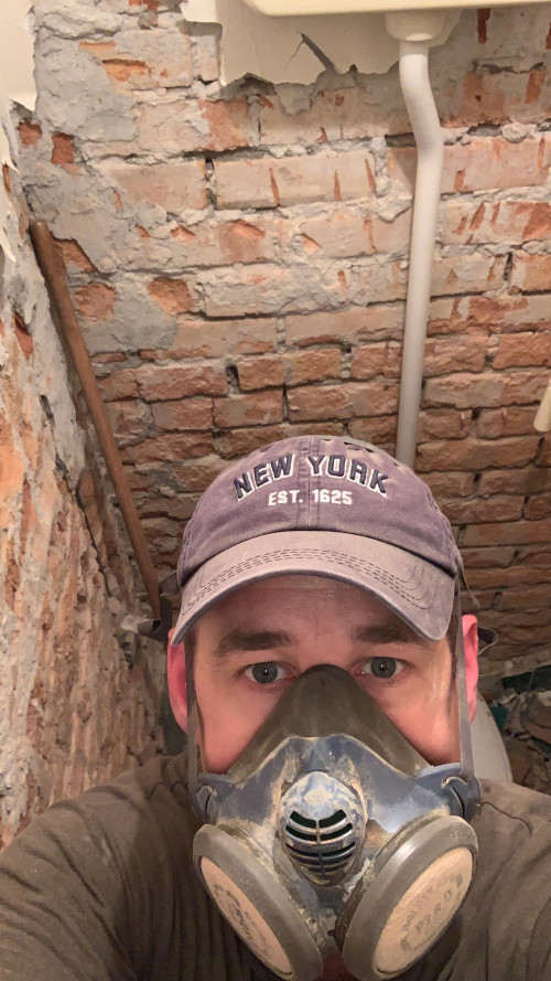 Dat moest ook wel want door een lek in de muur was het zo nat dat het er bijna af viel. De puin heb ik maar even buiten gelegd omdat ik daar verder nog geen afvoer voor heb.