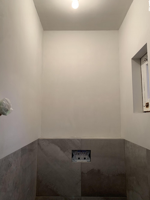 Vandaag heeft de Stucadoor de wc voorzien van stucwerk en dat ziet er heel netjes uit! Voor eventueel volgend werk gaan we hem weer vragen!