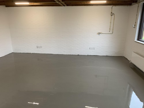 Sander heeft de eerste laag op de vloer van de garage gezet maar was nog niet tevreden dus komt er morgen nog een laag opzetten.