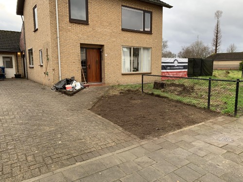 Nu nog bestrating regelen en leggen zodat we er ooit 2 auto’s naast elkaar kunnen plaatsen.