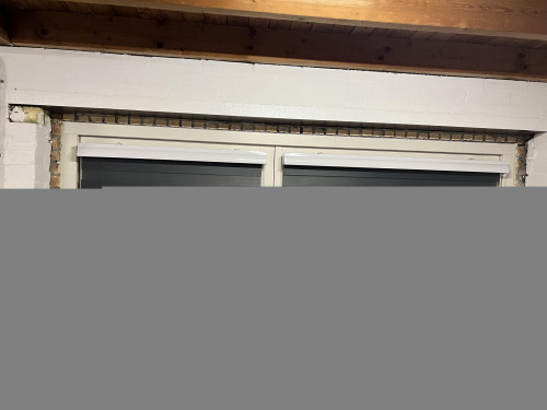 Om te zorgen dat men niet zomaar in de garage binnen kunnen kijken had Yvie deze rolgordijnen besteld. En die heb de ik vandaag even opgehangen. Deze gordijnen hebben ook nog een half stand zodat je toch licht binnen kunt laten maar ook nog flink wat afschermt.