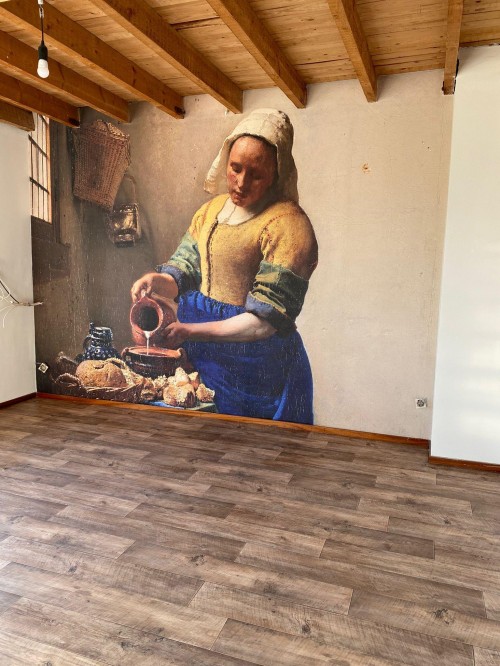 Yvie had een leuk idee en wilde dit graag, samen met haar vriendin Bianca hebben ze de muur op onze slaapkamer omgedraaid in een waar kunstwerk! Bianca heeft veel ervaring met behangen en dat is ook wel te zien want het zit er supernetjes tegenaan!