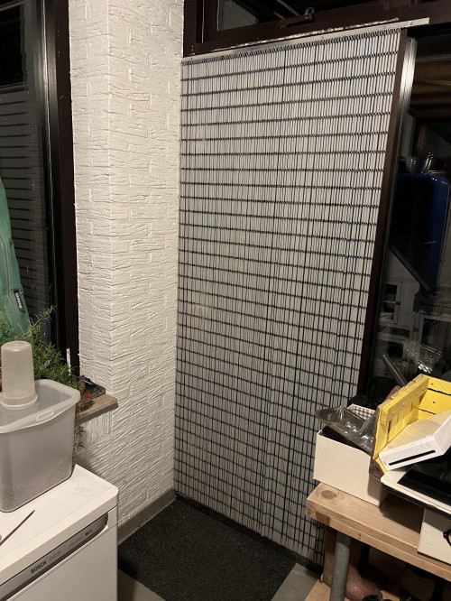 De eerste vliegen zijn alweer binnen gevonden dus heb ik nog even na de training ons geweldig zelf geregen vliegengordijn opgehangen!