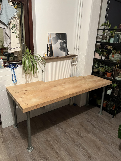 We hadden nog geen plekje voor de Mac en de printer dus heb ik de planken die we nog hadden van de ooit tafel en daarna bureau en nu weer een bureau! Flink wat schroeven en zagen verder hebben we nu een aardig plekje denk ik en daar heb ik meteen de Mac neergezet en ook meteen de Playstation. Inmiddels ook een lange kabel besteld die we rond gaan leggen zodat er ook een vaste kabel in de computers kan.