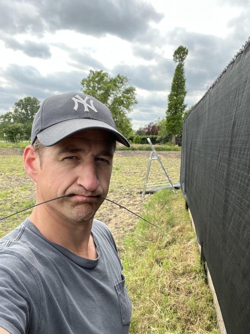 Vandaag hebben we de achterkant van de tuin dichtgemaakt door er een zwart doek tegenaan te maken.