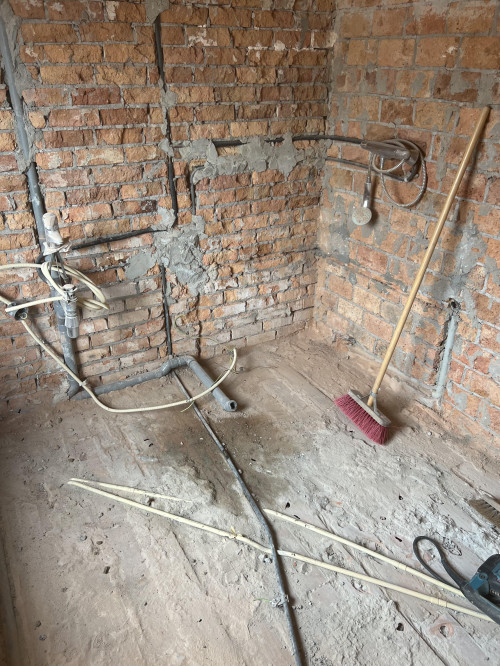 Dag 2 slopen en alles is eruit. Het plafond, de muren en het kozijn van de badkamer. Vanaf morgen wordt er weer opgebouwd!