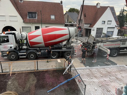 Vandaag was het beton er al vroeg en is er ook meteen begonnen met storten.