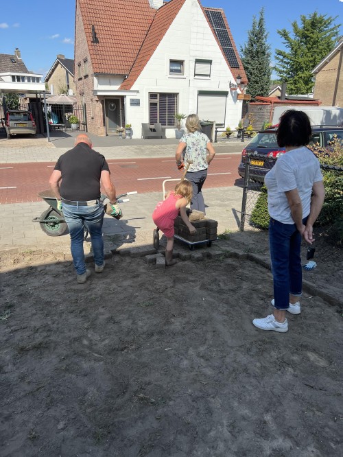 De klinkers op de oprit moesten eruit want over een paar dagen komen ze beton storten en dan moet het grondwerk gedaan zijn.Toen ik bijna klaar was kreeg ik gelukkig nog hulp van Yvie en de kinderen en zelfs Frans droeg zijn steentje bij!