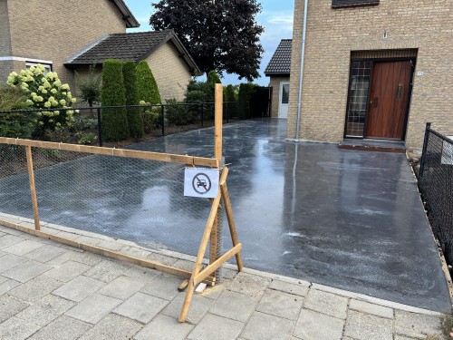 Omdat de oprit nog moet uitharden mogen er nog geen auto's of andere zware dingen op staan.Dus hebben we de oprit nu voor voetgangers geopend!