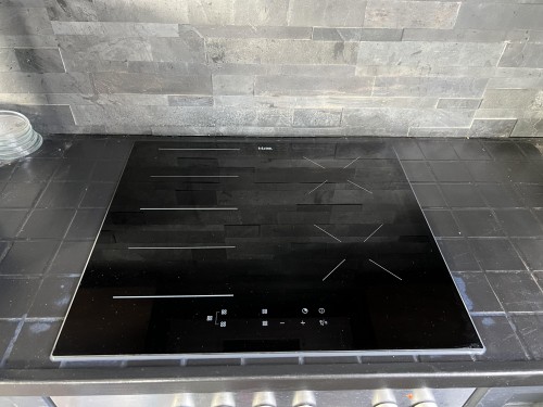 Dus hebben we een inductieplaat aangeschaft die we met de hulp van Sander (gat op maat) en Ad (voor de electro) geïnstalleerd.