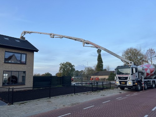 Al vroeg vanmorgen waren de werkmannen aanwezig om op tijd klaar te zijn voor als de betonwagen zou komen.