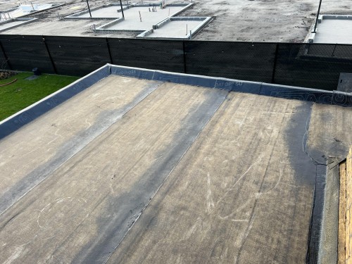 Het was al dicht met hout maar nu is er ook dakleer opgekomen zodat het tegen de regen kan. Het is nog niet klaar maar het kan al tegen de regen!