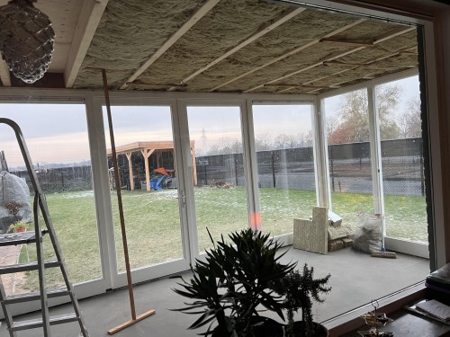 Ook de aanbouw die bijna klaar is moet van isolatie voorzien worden en dat was een mooi zondag klusje!