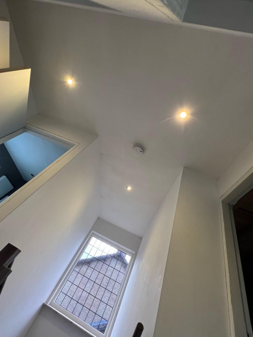 Inmiddels is het stucwerk overal goed gedroogd en was het tijd voor de elektricien om hun werk verder af te maken.
