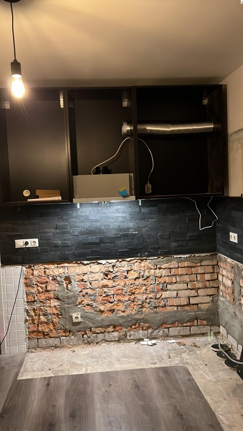Nu de keuken eruit is kan er begonnen worden met opbouwen. Samen met Jeroen hebben we inmiddels een begin gemaakt en zijn er zelfs al wat dingen aangesloten, al moeten we de draden wel nog wegwerken. Zondag komt Jeroen weer en gaan we hopelijk het grootste gedeelte onder zetten, zodat ik verder kan met afwerken. Misschien alvast het keukeneiland in elkaar zetten, want mijn handen jeuken om verder te gaan ;-)