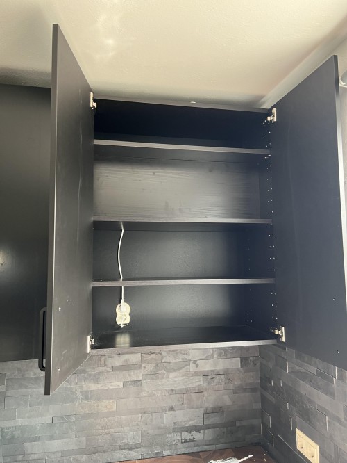 De buis van de afzuiging loopt door het kastje heen en dat is niet mooi als je dat blijft zien dus ben ik bezig geweest om deze weg te werken en ik moet zeggen dat het best aardig gelukt is!