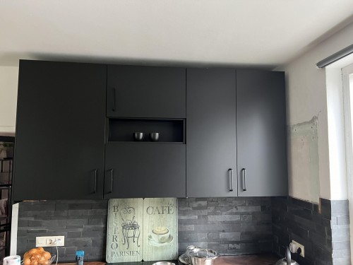 Omdat we dit zo leuker vinden en het anders een groot zwart vlak zou worden. Maar dit formaat deurtje hebben ze niet alleen als lagegrond en dan moet je zelf de gaten voor de scharnieren maken en dat heb ik dus gedaan.