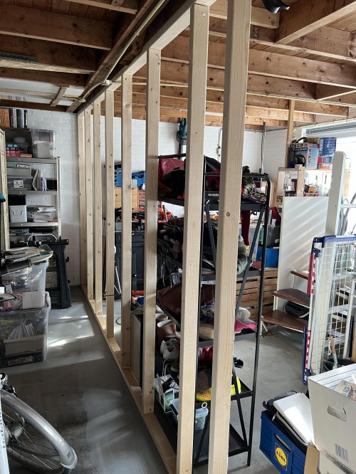 Voor ons nieuwe atelier heb ik de eerste werkzaamheden verricht! Het frame om een wand te maken is gezet en nu moet ik kozijnen halen om te plaatsen waarna ik de muur dicht ga maken. Wel eerst nog op vakantie!